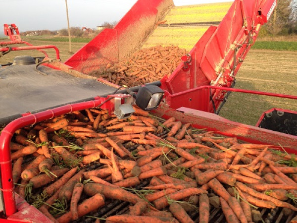 Traktor wyposażony w specjalne taśmy najpierw wyciąga z ziemi marchewki chwytając taśmą za natkę, następnie natka jest odcinana a marchew trafia do specjalnego kontenera, w którym jest sortowana przez pracownika. Marchewka, która nadaje się do spożycia jest wrzucana do specjalnego pojemnika. Wszystko dzieje się bardzo szybko: po przejechaniu ok. 300 metrów pojemnik jest pełny dobrej marchewki.