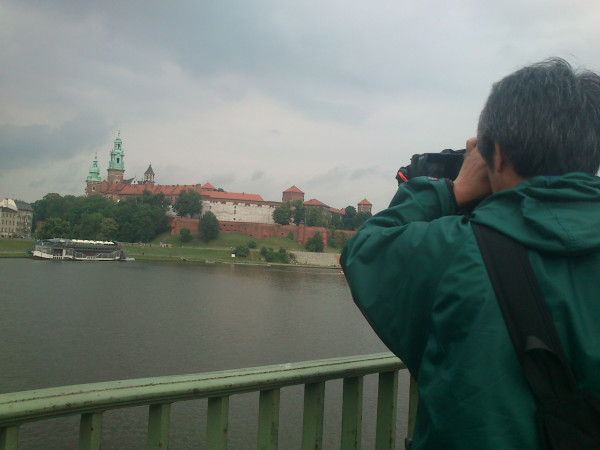 まず最初に待ち合わせたのは、クラクフのヤギエウォ大学日本学科で学ぶクラウディアさん。観光客にもおなじみのヴァヴェル城や旧市街の中央広場を回りました。毎時ラッパが鳴ることで有名な聖マリア教会の上にものぼり、ラッパ吹きの人のお話を聞くこともできました。