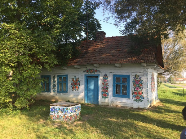 クラクフから車で2時間ほど行ったところに、ザリピエという小さな村があります。この村がポーランドの他の村と違うのは、家の壁や家具、犬小屋にまで花模様が描かれていることです。