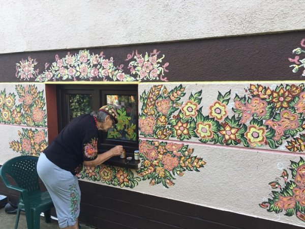Jednym z nich jest pani Danuta Dymon – energiczna starsza pani, którą odwiedziliśmy wraz z telewizją TBS. Jeśli mielibyśmy wybrać najbardziej przyozdobiony malunkami dom, bez wątpienia byłby to ten, w którym mieszka pani Danuta: kwiatowe wzory pokrywają każdą część jego część.