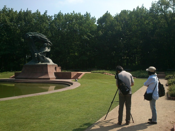 Pierwszymi obiektami nagrań była Warszawa i Kościół św. Krzyża, następnie Muzeum Fryderyka Chopina. Po drodze mieliśmy okazję również zobaczyć ławkę F. Chopina i aby pozostać w temacie, odwiedziliśmy wspaniały koncert chopinowski w warszawskich Łazienkach Królewskich. Równie ważnym miejscem na naszej liście był Uniwersytet Muzyczny im. Fryderyka Chopina, gdzie naszą przewodniczką była jedna ze studentek – Pani Tsutsui, która zaprezentowała nam również swoją wspaniałą grę na fortepianie.