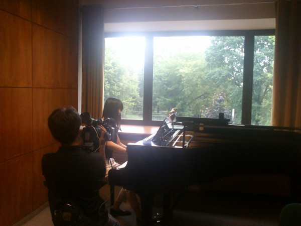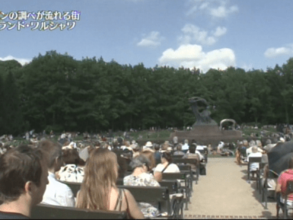 まずはショパンの足跡を辿る旅として聖十字架教会やショパン博物館、ショパンのベンチ、ワルシャワの夏の風物詩であるワジェンキ公園のショパンコンサートなどを取材。ナビゲーターとして出演して頂いた音楽留学生の筒井さんには、ショパン大学でのピアノ練習風景を覗かせてもらいました。